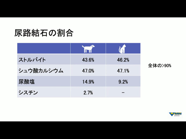 ・犬・猫の代表的な尿結晶 - ・尿路結石の割合
