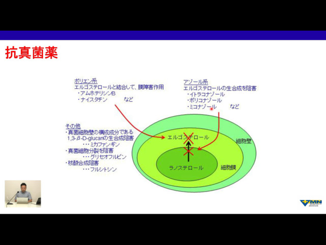・抗真菌薬: アムホテリシンB (AmB) - ・解剖学的部位と代表的な感染症